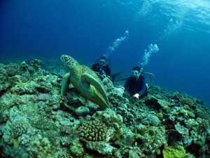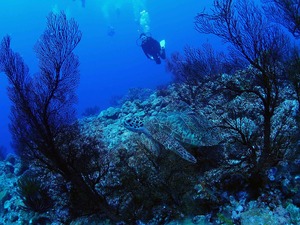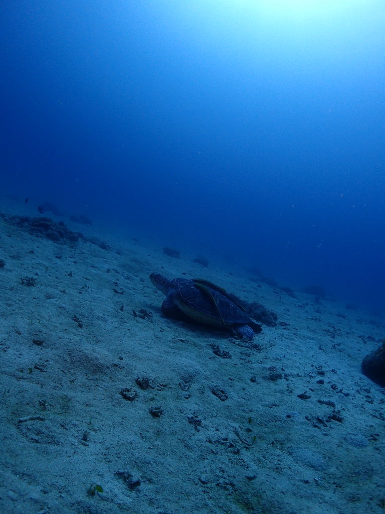 砂地でカメにマダラトビエイなど