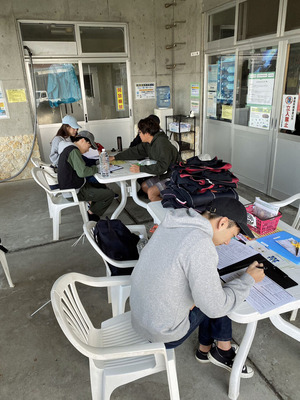 講習チームはビーチで